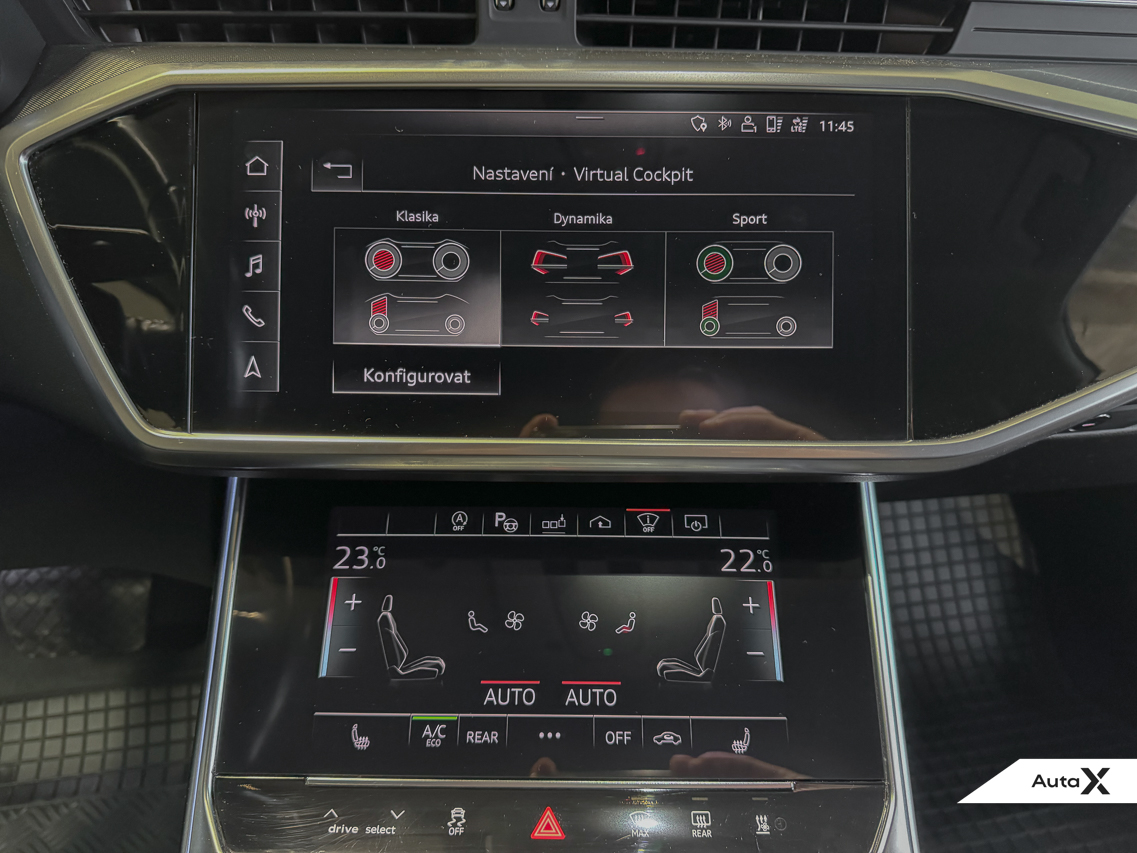 Audi A6 Avant 45 TDI je ideální kombinací výkonu, komfortu a efektivity. Šestiválcový dieselový motor nabízí kultivovaný chod, dostatek výkonu i při plném zatížení a zároveň rozumnou spotřebu. Pohon quattro zajišťuje jistotu za všech podmínek a automatická převodovka přispívá k maximálnímu komfortu při každodenním používání i na dlouhých trasách.