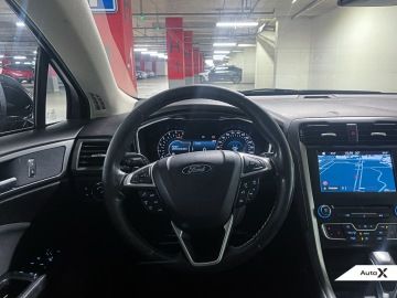 VÝBAVA VOZU: BARVA - ČERNÁ, ČALOUNĚNÍ - TMAVÁ LÁTKA, ADAPTIVNÍ PŘEDNÍ SVĚTLOMETY FORD DYNAMIC LED, AUTOMATICKÉ PŘEPÍNÁNÍ DÁLKOVÝCH A POTKÁVACÍCH SVĚTEL, ASISTENT UDRŽOVÁNÍ JÍZDNÍHO PRUHU, ROZPOZNÁVÁNÍ DOPRAVNÍCH ZNAČEK, PŘEDNÍ A ZADNÍ PARKOVACÍ SENZORY, NAVIGAČNÍ SYSTÉM SYNC III, VYHŘÍVANÉ ČELNÍ OKNO, VYHŘÍVANÝ VOLANT, VYHŘÍVANÁ PŘEDNÍ SEDADLA S NASTAVITELNOU TEPLOTOU, SPORTOVNÍ PŘEDNÍ SEDADLA, DVOUZÓNOVÁ AUTOMATICKÁ KLIMATIZACE, START/STOP SYSTÉM, BEZKLÍČOVÉ ODEMYKÁNÍ A STARTOVÁNÍ, ELEKTRICKY OVLÁDANÁ PŘEDNÍ A ZADNÍ OKNA (JEDNÍM DOTYKEM), ELEKTRICKY SKLOPNÁ A VYHŘÍVANÁ ZPĚTNÁ ZRCÁTKA S INTEGROVANÝM BLINKREM, ELEKTROCHROMATICKÉ VNITŘNÍ ZPĚTNÉ ZRCÁTKO, LED DENNÍ SVÍCENÍ A SIGNATURNÍ OSVĚTLENÍ, KOŽENÝ MULTIFUNKČNÍ VOLANT, CHROMOVANÉ DETAILY KAROSERIE VČETNĚ STŘEŠNÍHO NOSIČE, TÓNOVANÁ A SOUKROMÁ SKLA, 17" LITÁ KOLA, ISOFIX UCHYCENÍ DĚTSKÝCH SEDAČEK